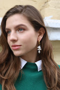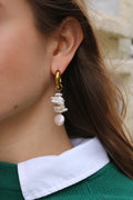 Les boucles d'oreilles et les bracelets en métal sont fabriqués en laiton et recouverts de rhodium/or 18 carats. Ils résistent à la corrosion et ne changent pas de couleur au contact de l'eau.